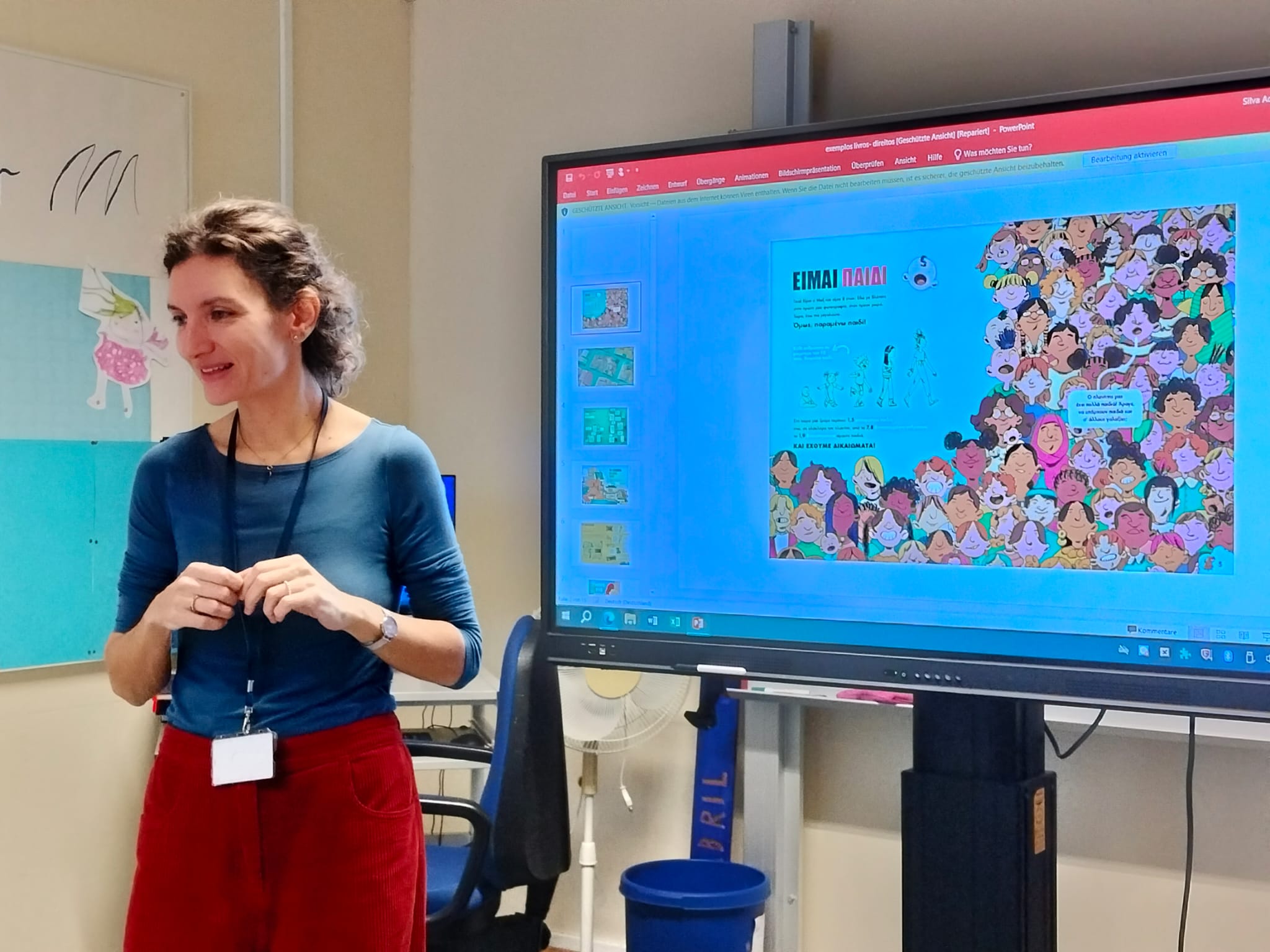 Die griechische Schauspielerin und Kindertheater-Macherin Maria Stefanidou begeisterte die griechischen Kinder mit Improvisations- und Theaterworkshops, in denen sie sich ausprobieren konnten.