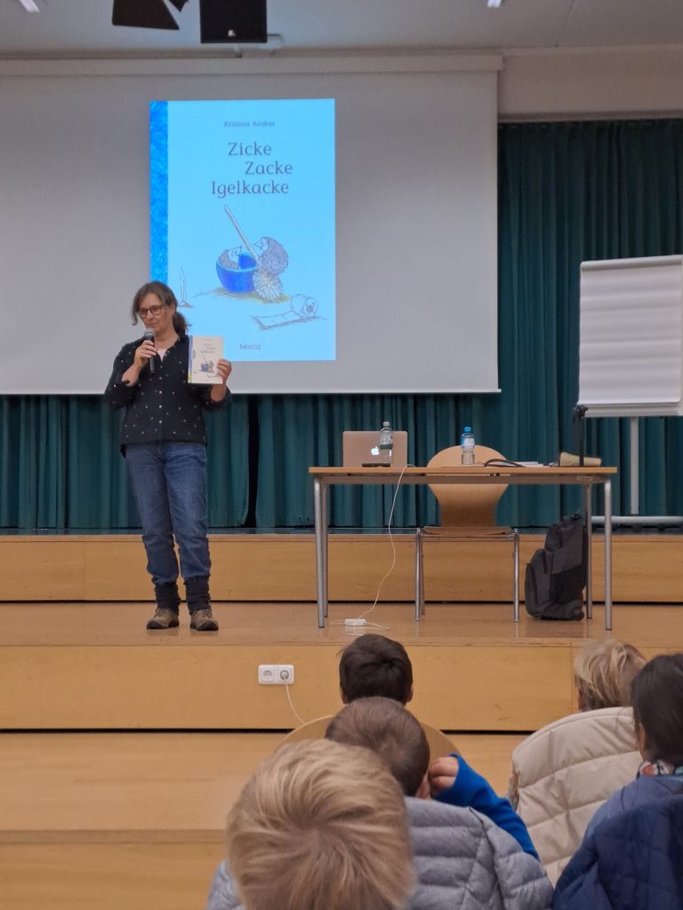 Die Künstlerin, Bilderbuchillustratorin und Autorin Kristina Andres las und zeichnete für die ersten und zweiten klassen Deutsch. Sie lebt auf einem Hof am Wald in Mecklenburg.